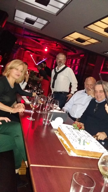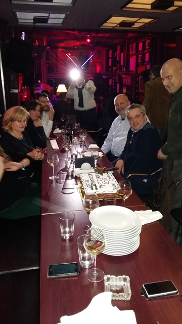 Στο τεράστια μακρύ τραπέζι ,που η ψευδαίσθηση της  φωτο  μας  παρουσιάζει , τα φλας ανάβουν και  αποθανατίζουν όλους τους παραπάνω κυρίους και κυρίες  μαζί  με τον πρόεδρο του συλλόγου Κο Γρηγοράτο  Σωκράτη (εταιρία Rythmos ), όρθιος μπροστά από την πίτα .